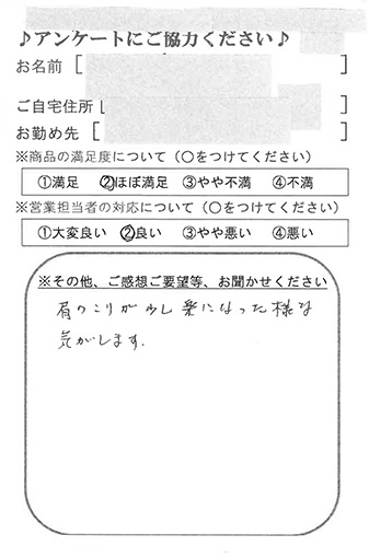 肩のこりが少し楽になった様な気がします。