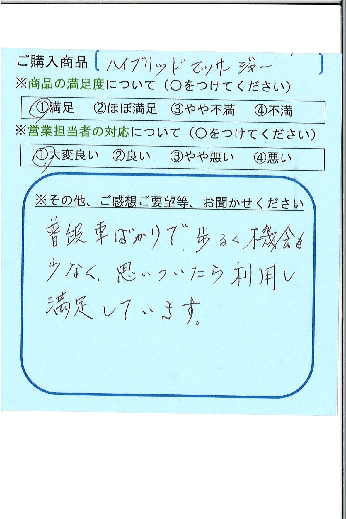普段、車ばかりで歩く機会も少なく、思いついたら利用し、満足しています。