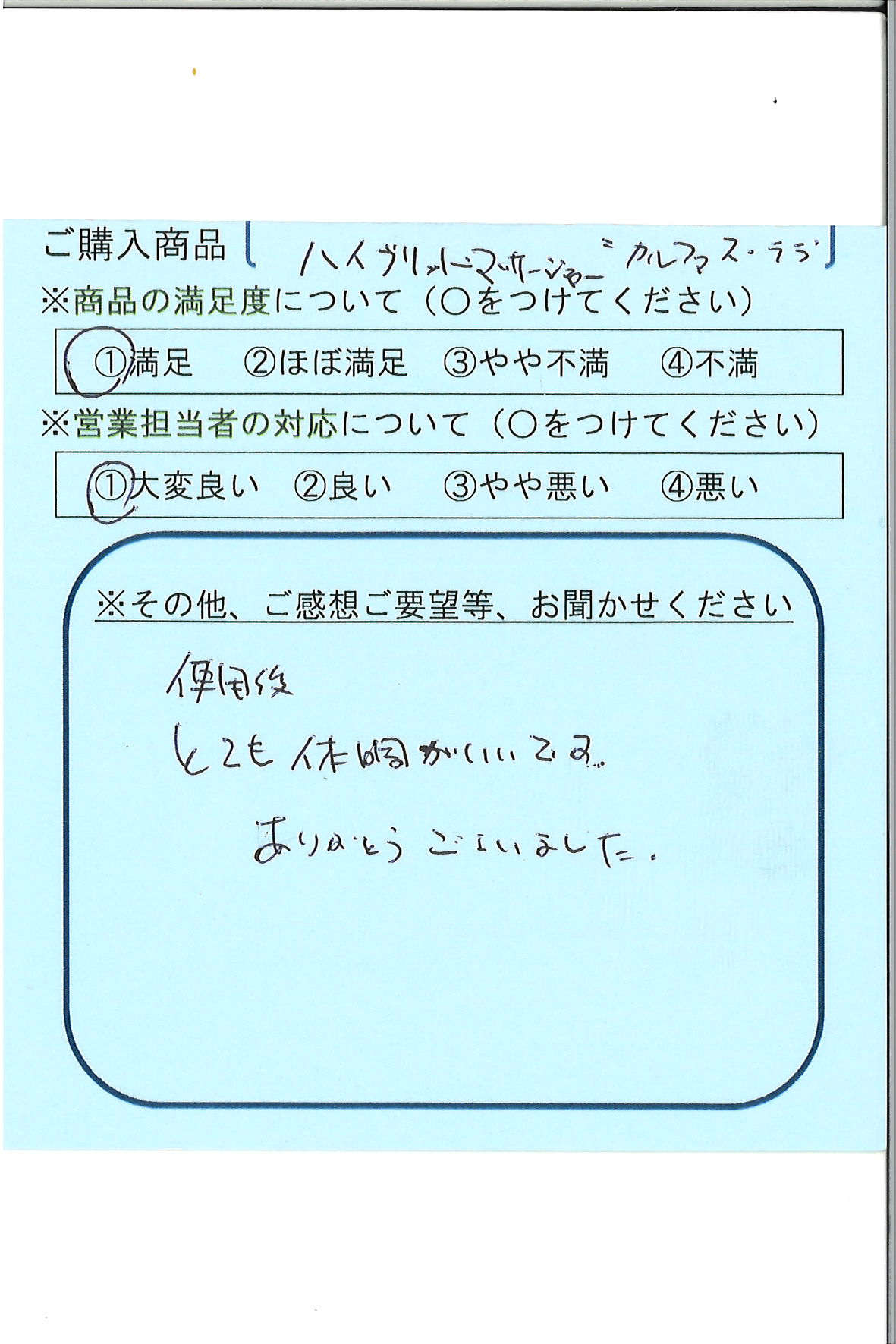 使用後、とても体調がいいです。ありがとうございました。