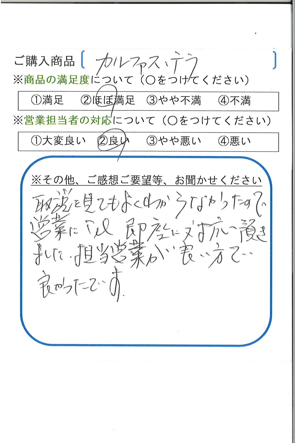 担当営業が良い方で良かったです。