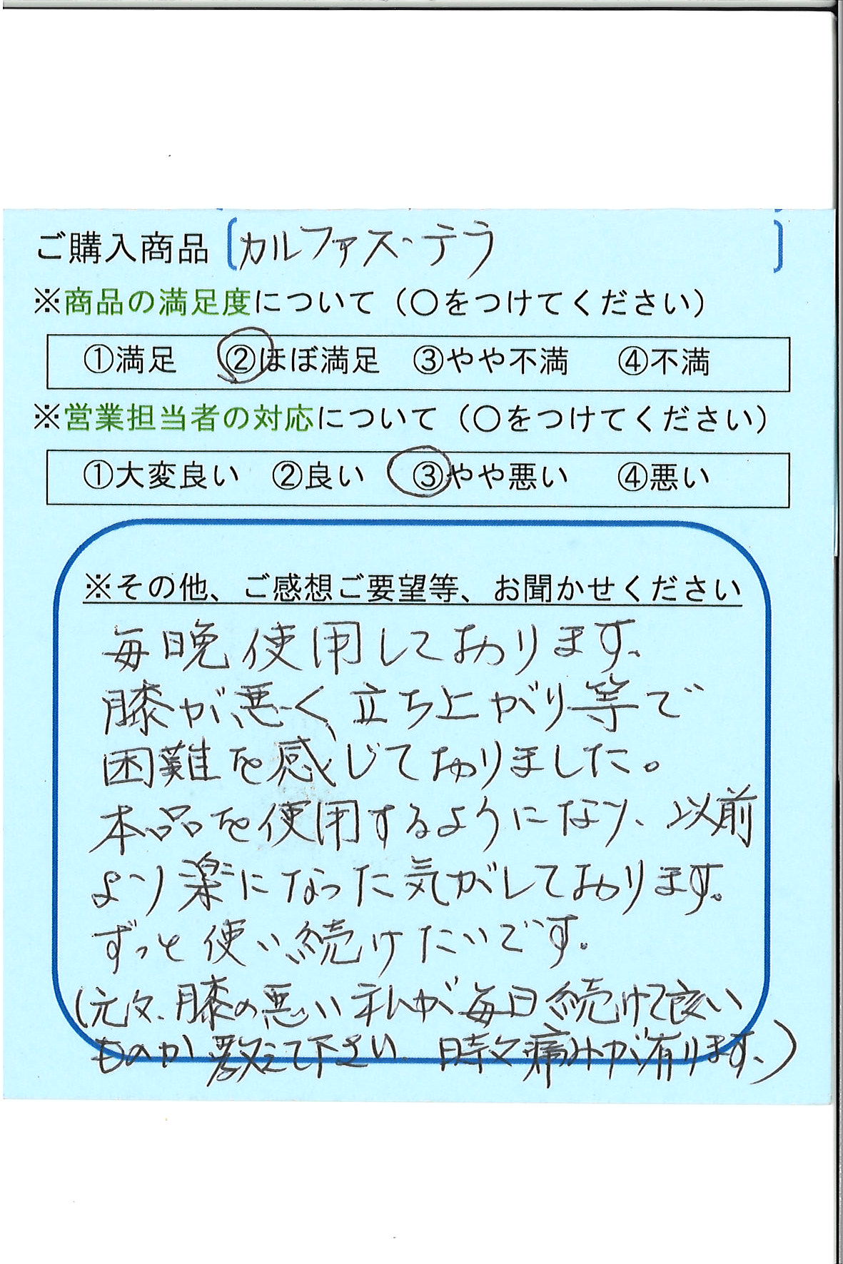 膝が悪く、立ち上がり等で困難を感じておりました。