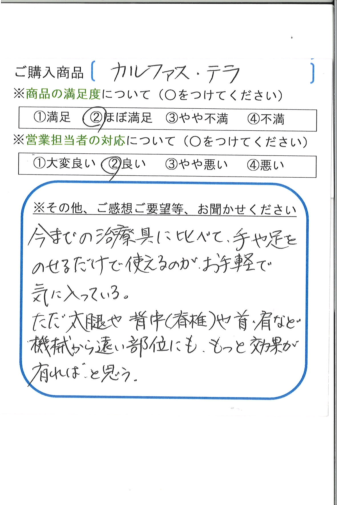 今までの治療器に比べて、手や足をのせるだけで使えるのがお手軽で気に入っている。