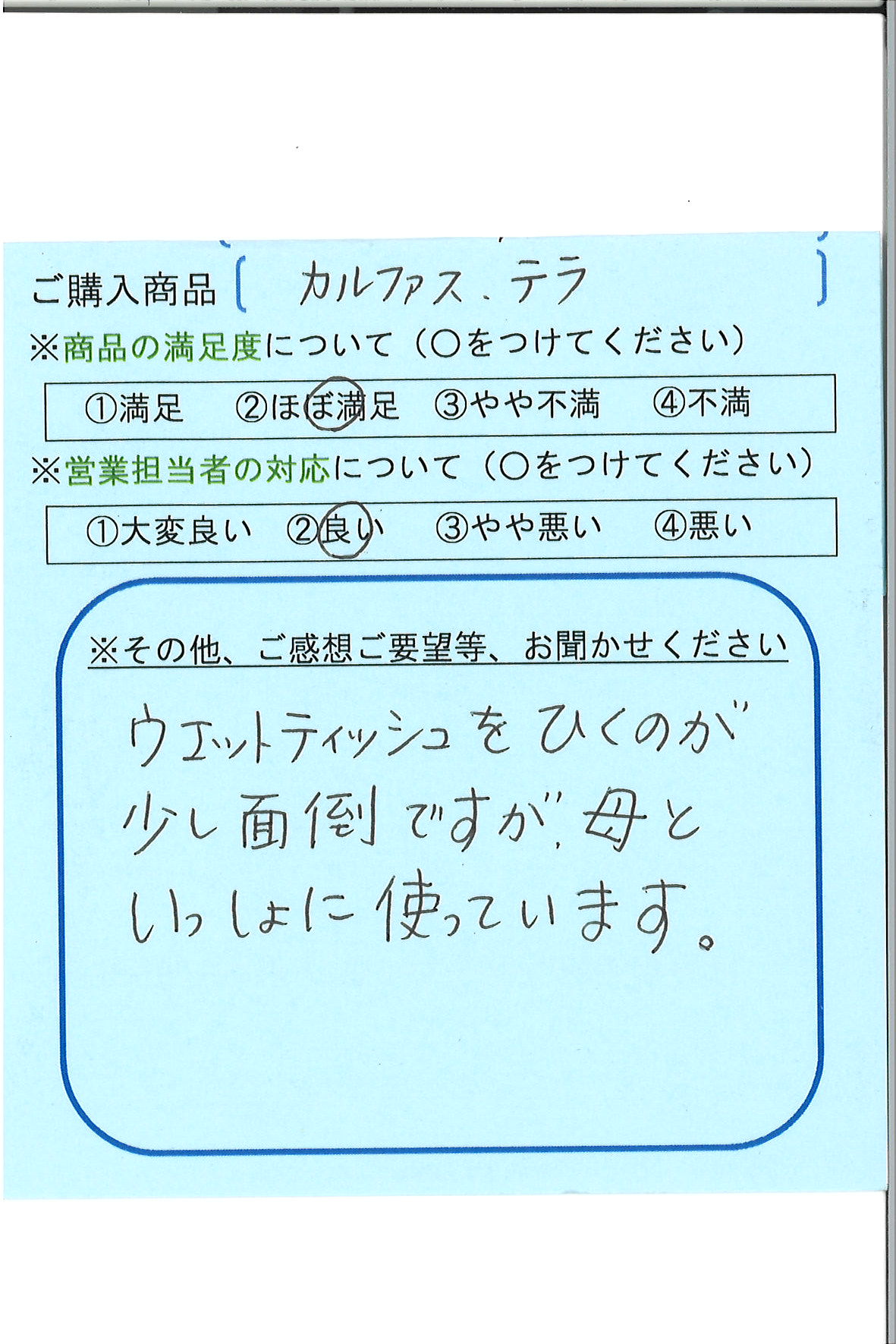 ウェットティッシュをひくのが少し面倒ですが、母といっしょに使っています。