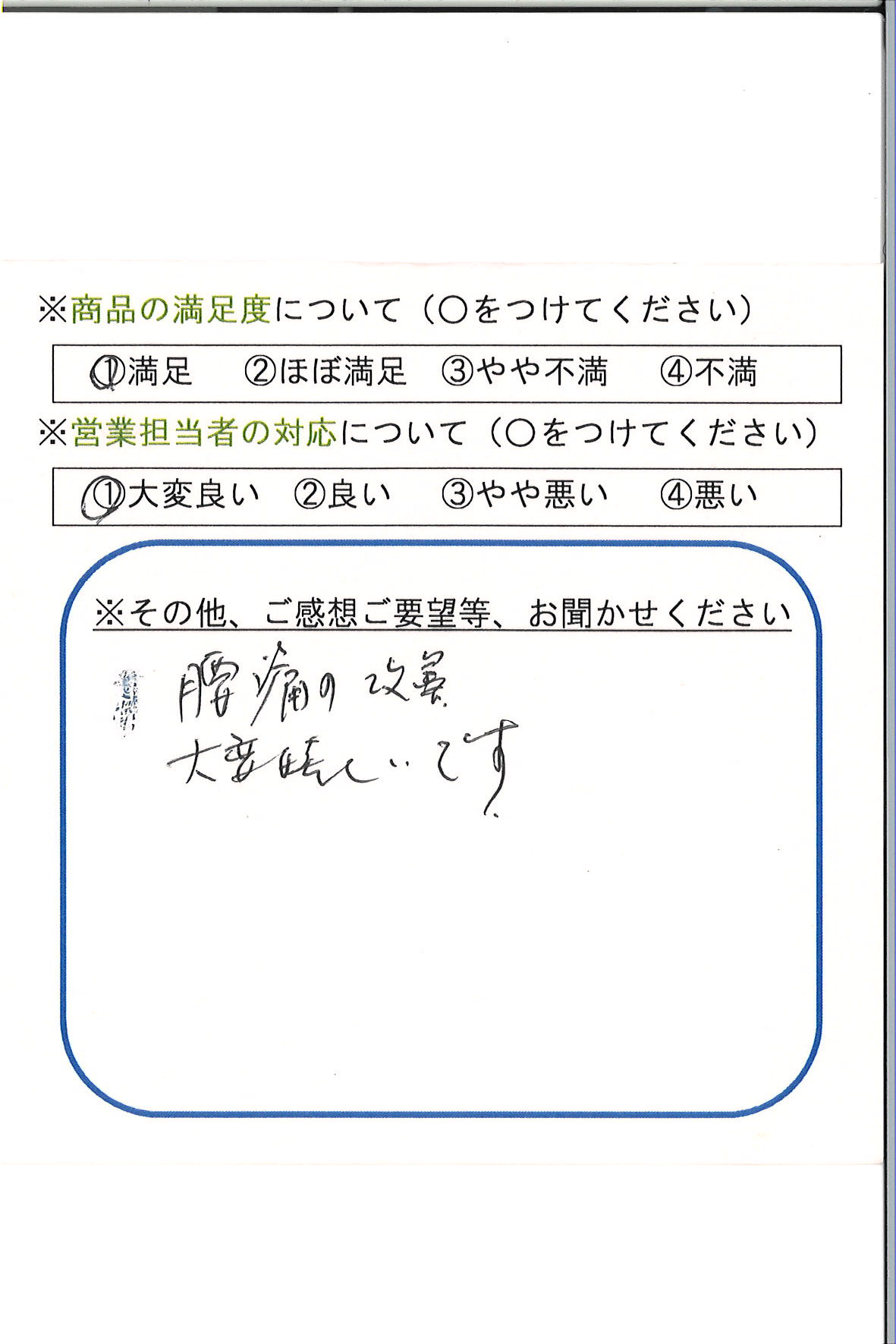 腰痛の改善、大変うれしいです。