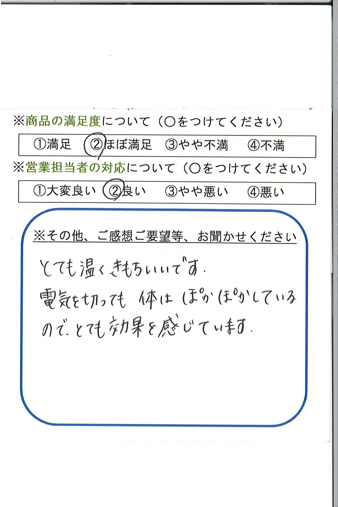 電源を切っても体はポカポカしているので、とても効果を感じています。
