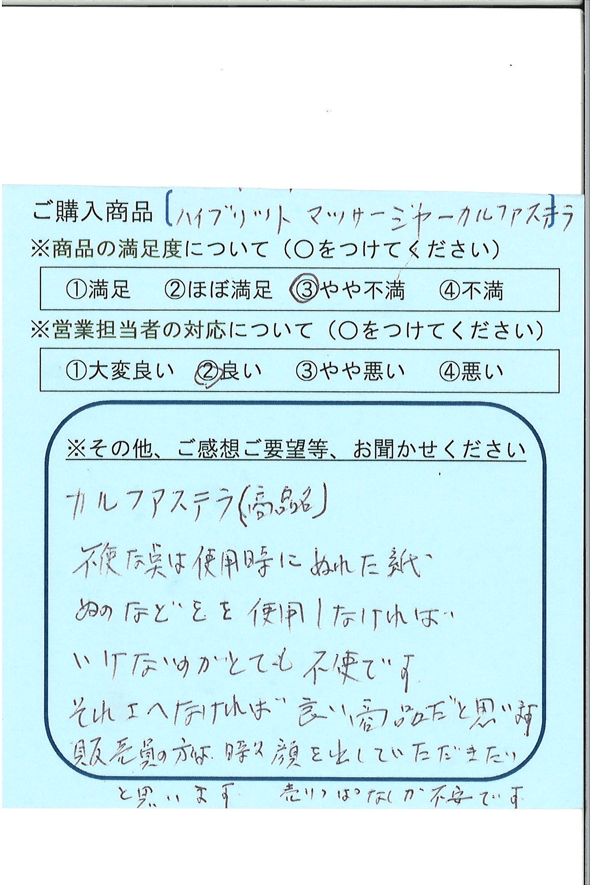販売員の方は時々顔を出していただきたいと思います。売りっぱなしが不安です。