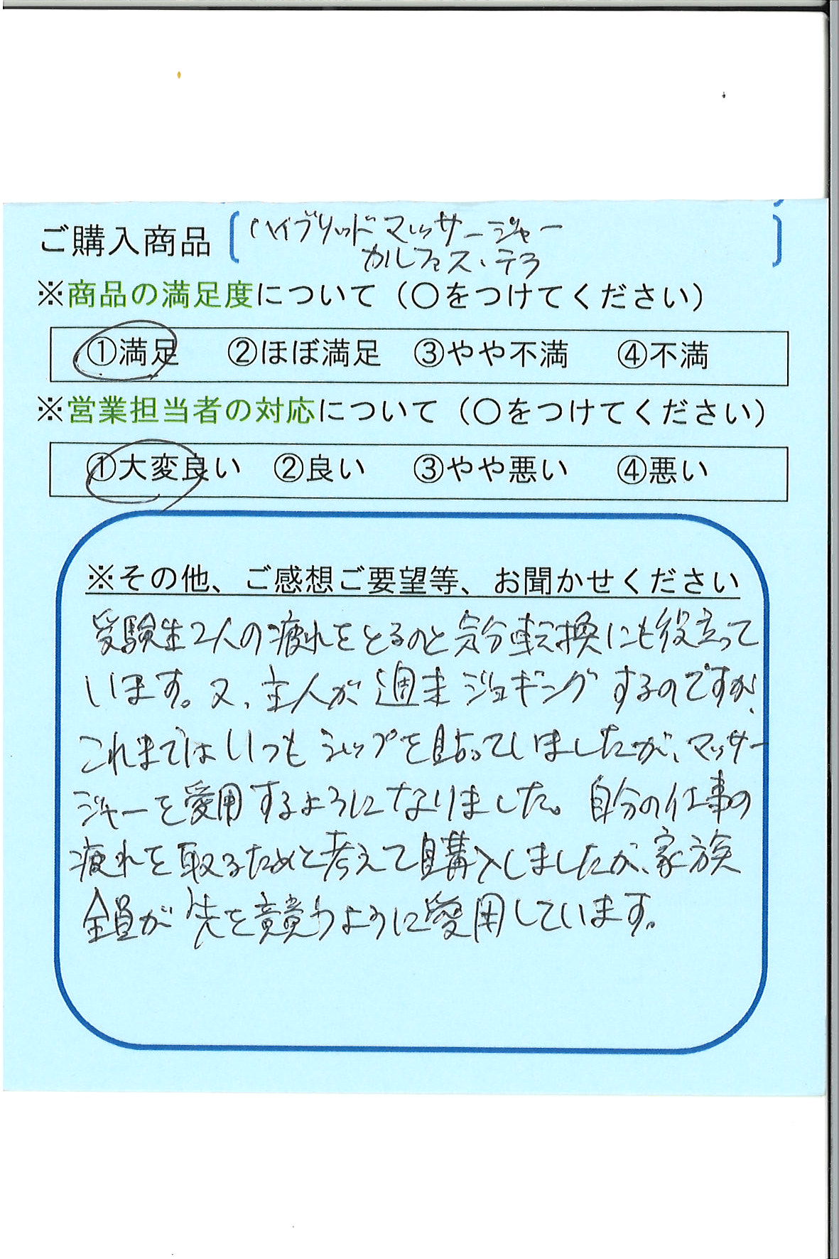 自分の仕事の疲れを取るためと考えて購入しましたが、家族全員が先を競うように愛用してます。