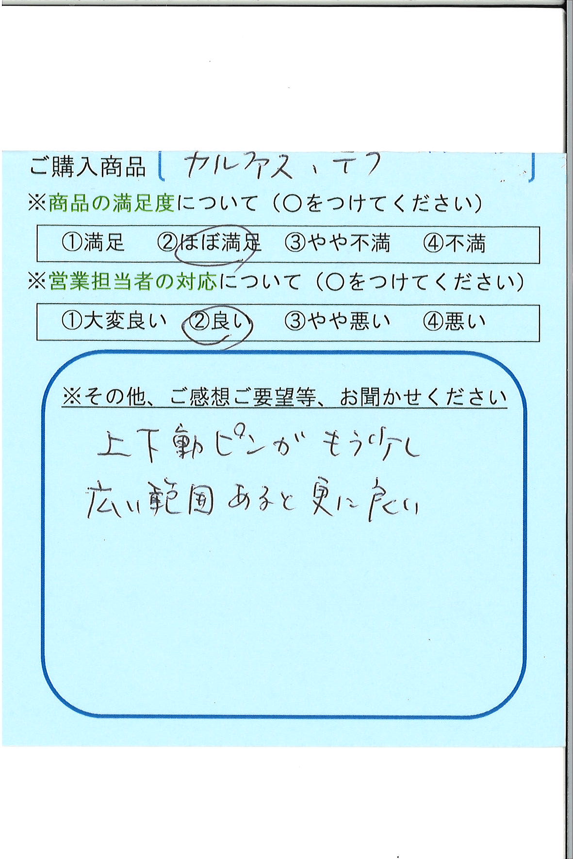 上下振動ピンがもう少し広い範囲にあると更に良い。