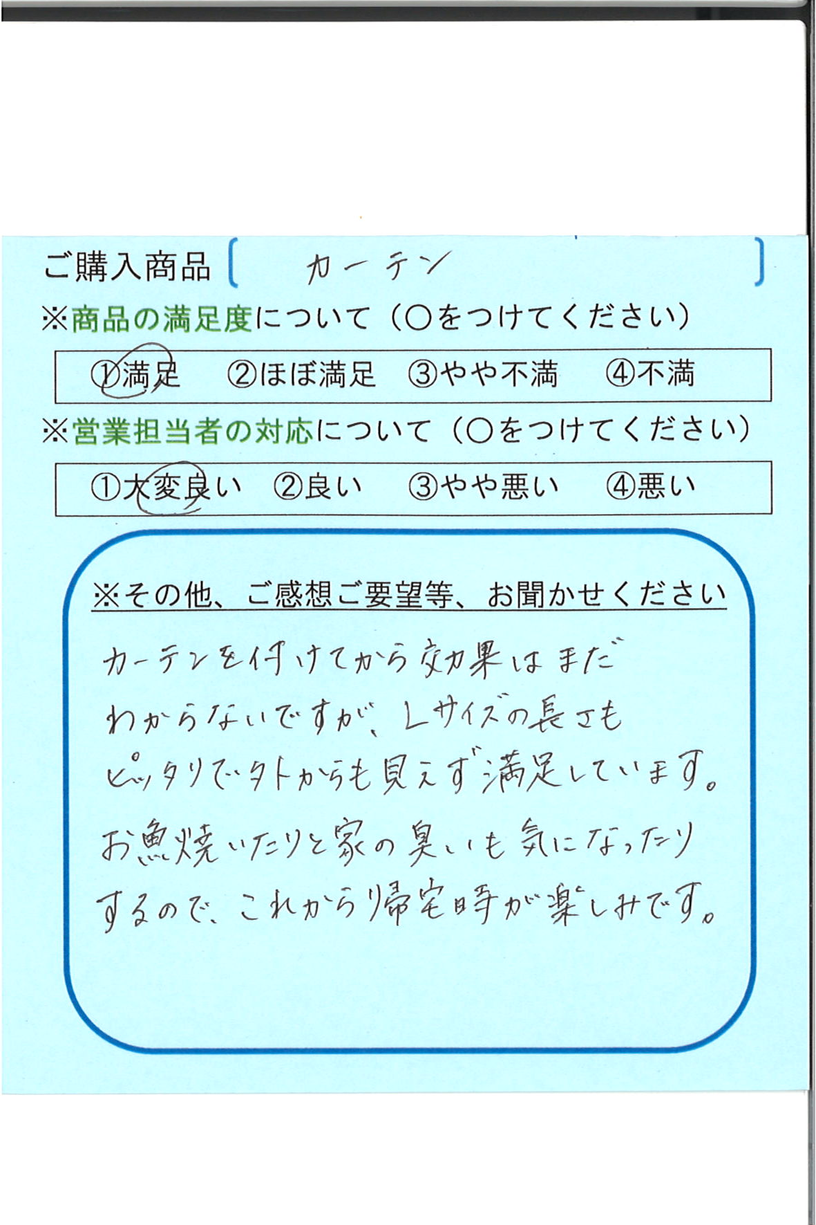 カーテンを付けてから、効果はまだわからないですが、Lサイズの長さもピッタリで、外からも見えず満足しています。