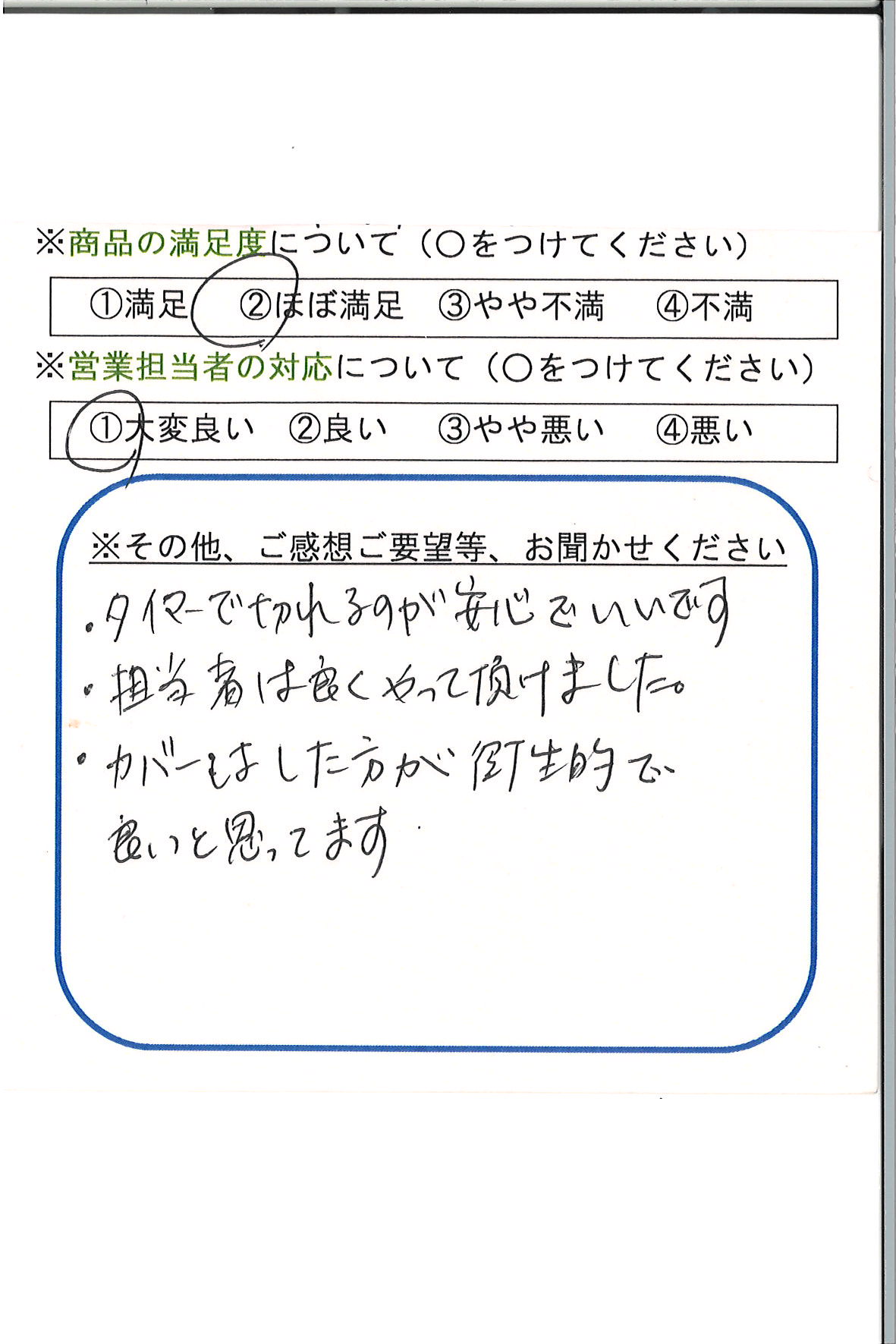 ・担当者は良くやって頂けました。