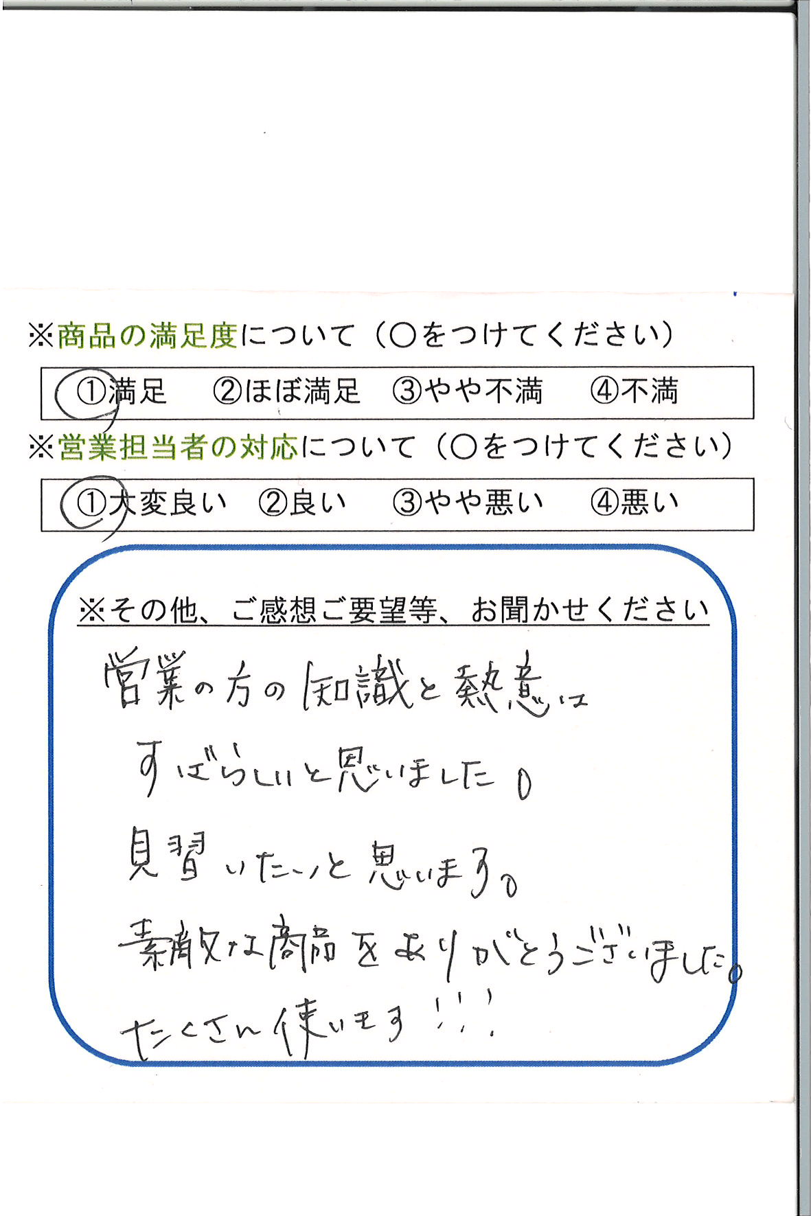 営業の方の知識と熱意はすばらしいと思いました。
