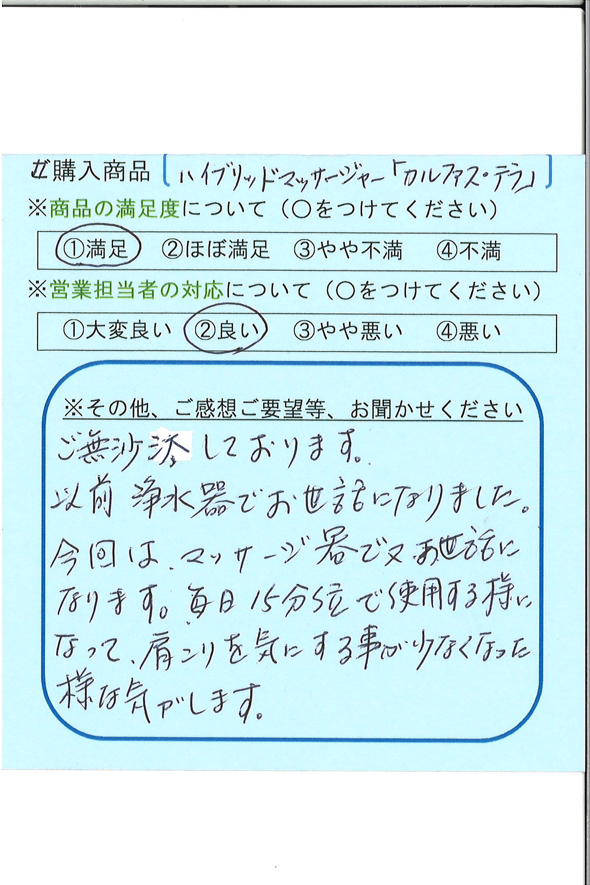 以前浄水器でお世話になりました。