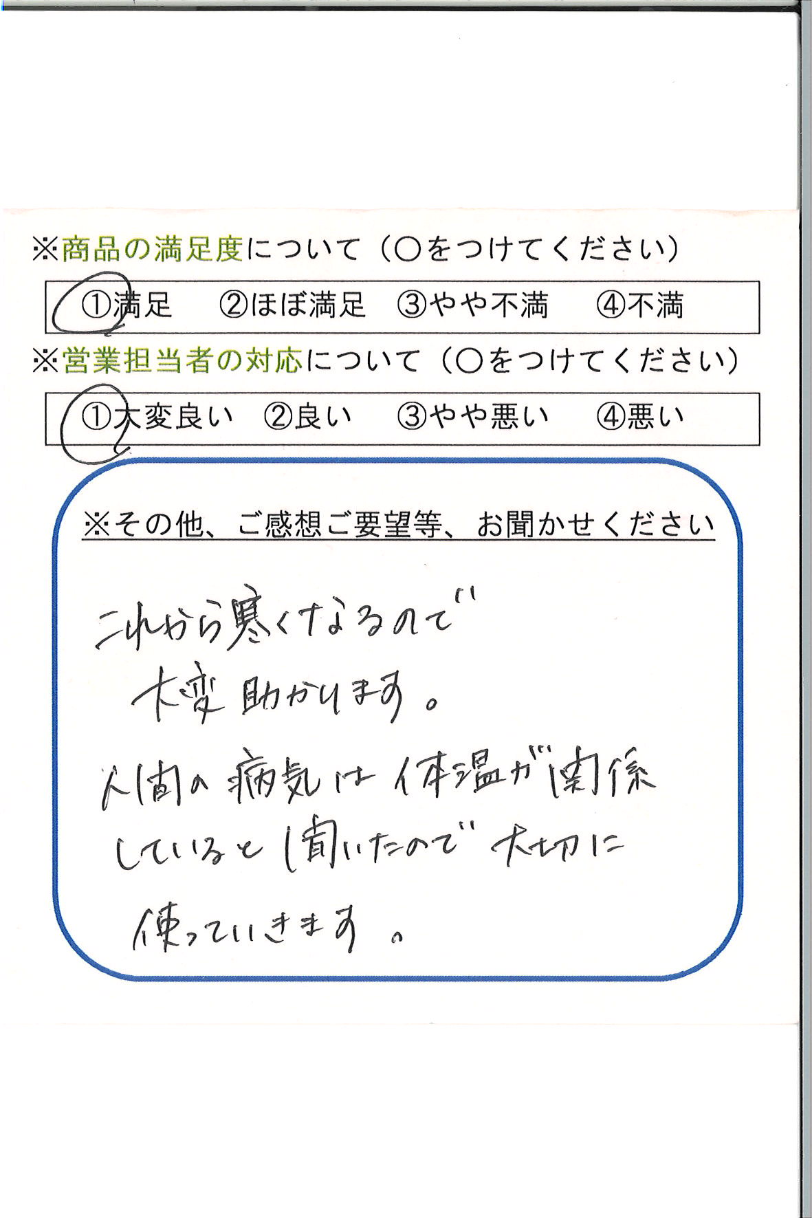 人間の病気は体温が関係していると聞いたので、大切に使っていきます。