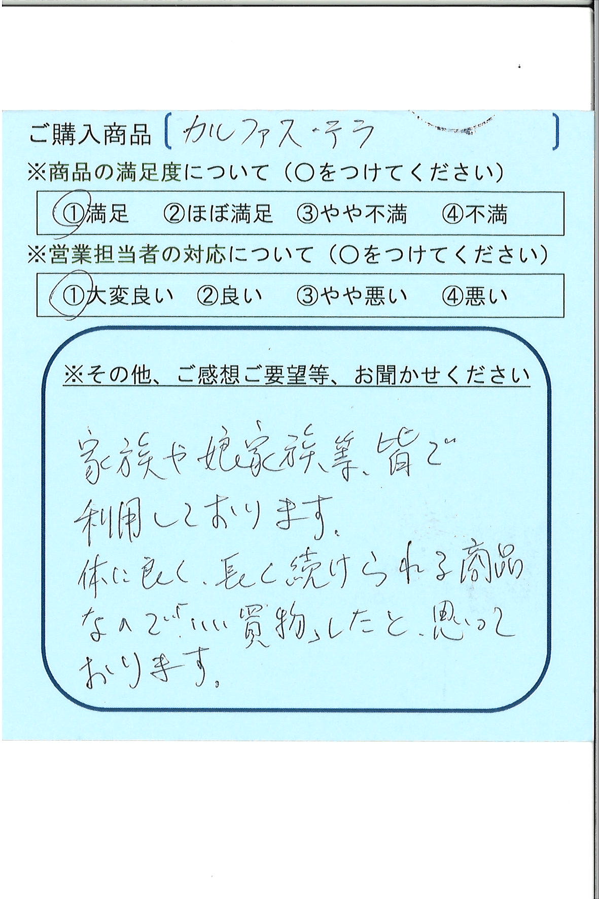 体に良く長く続けられる商品なので「いい買い物」したと思っております。