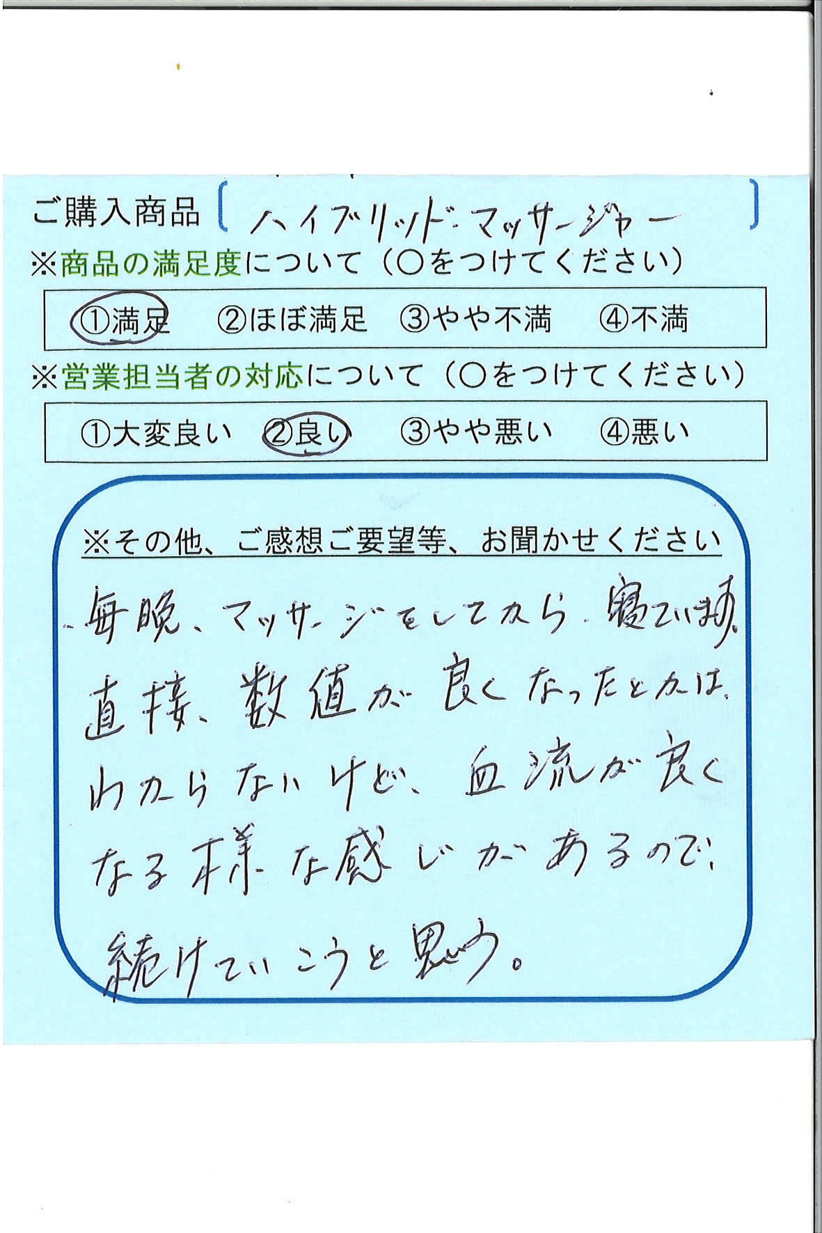 直接、数値が良くなったとかはわからないけど、血流が良くなるような感じがあるので続けていこうと思う。
