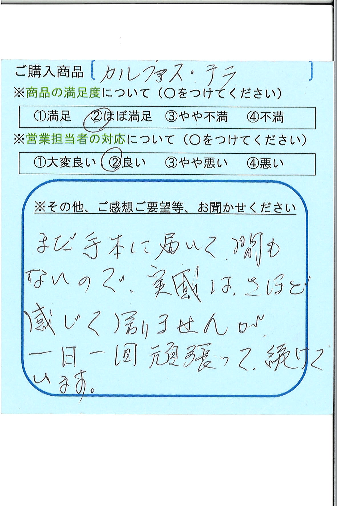まだ手元に届いて間もないので、実感はさほど感じて居ませんが、一日一回頑張って続けています。
