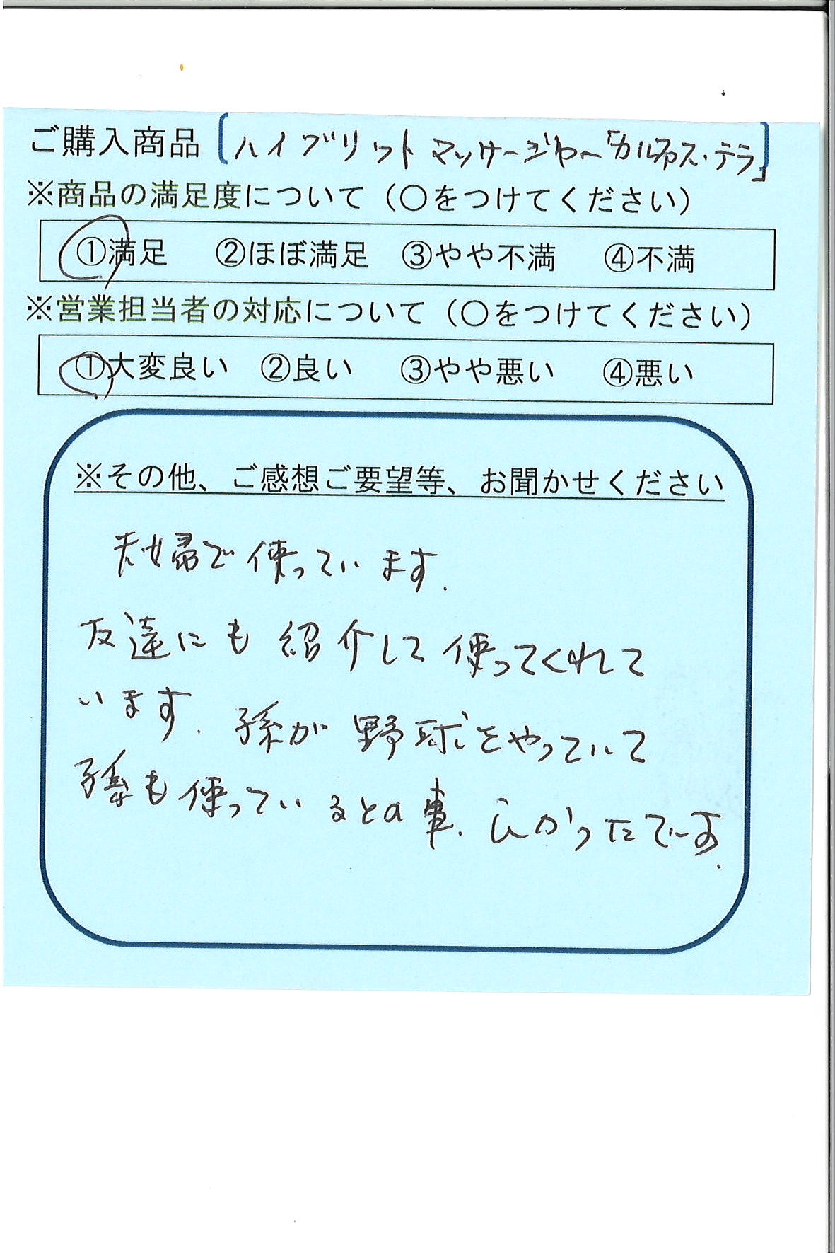 友達にも紹介して使ってくれています。孫が野球をやっていて、孫も使っているとの事、良かったです。