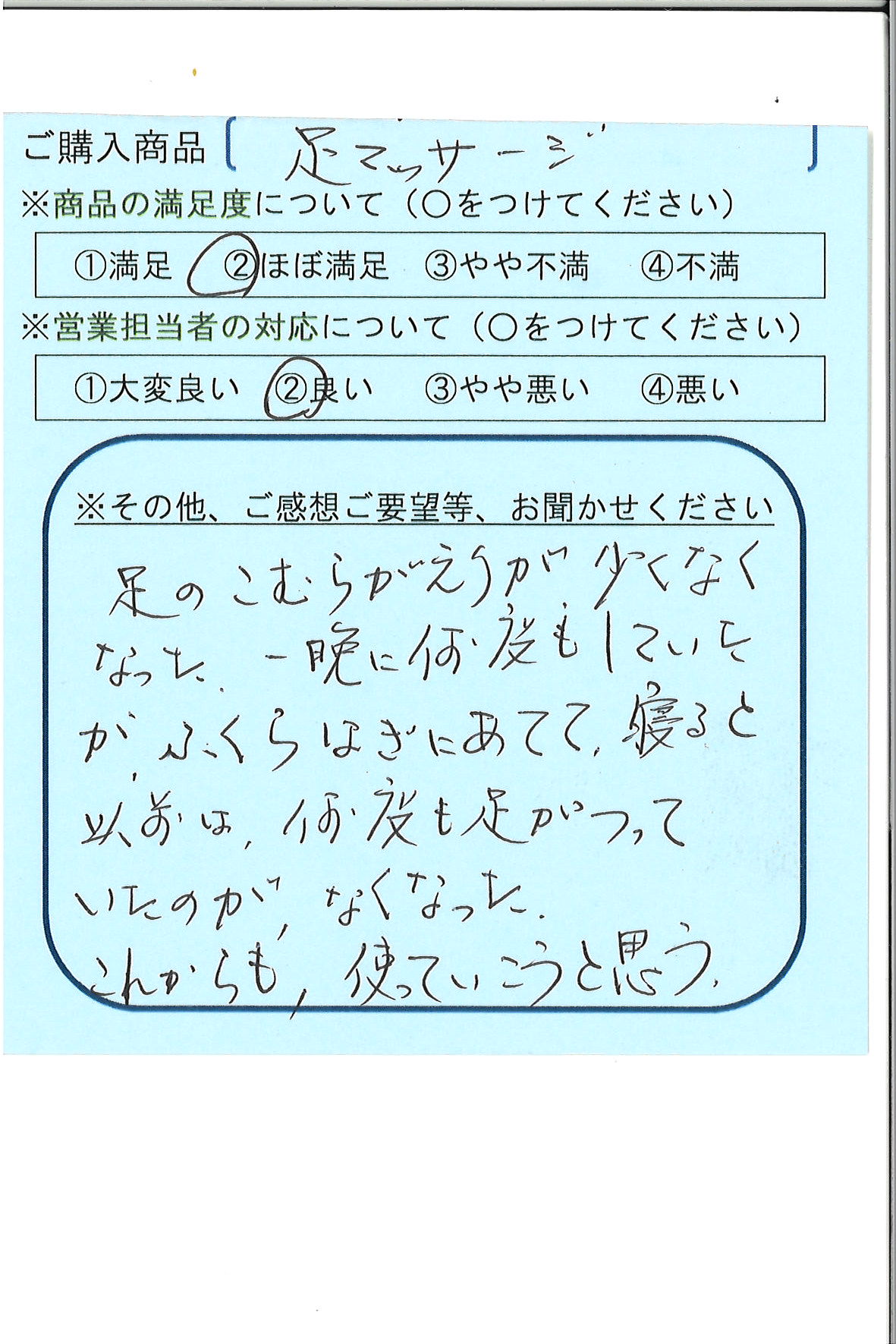 足のこむら返りが少なくなった。