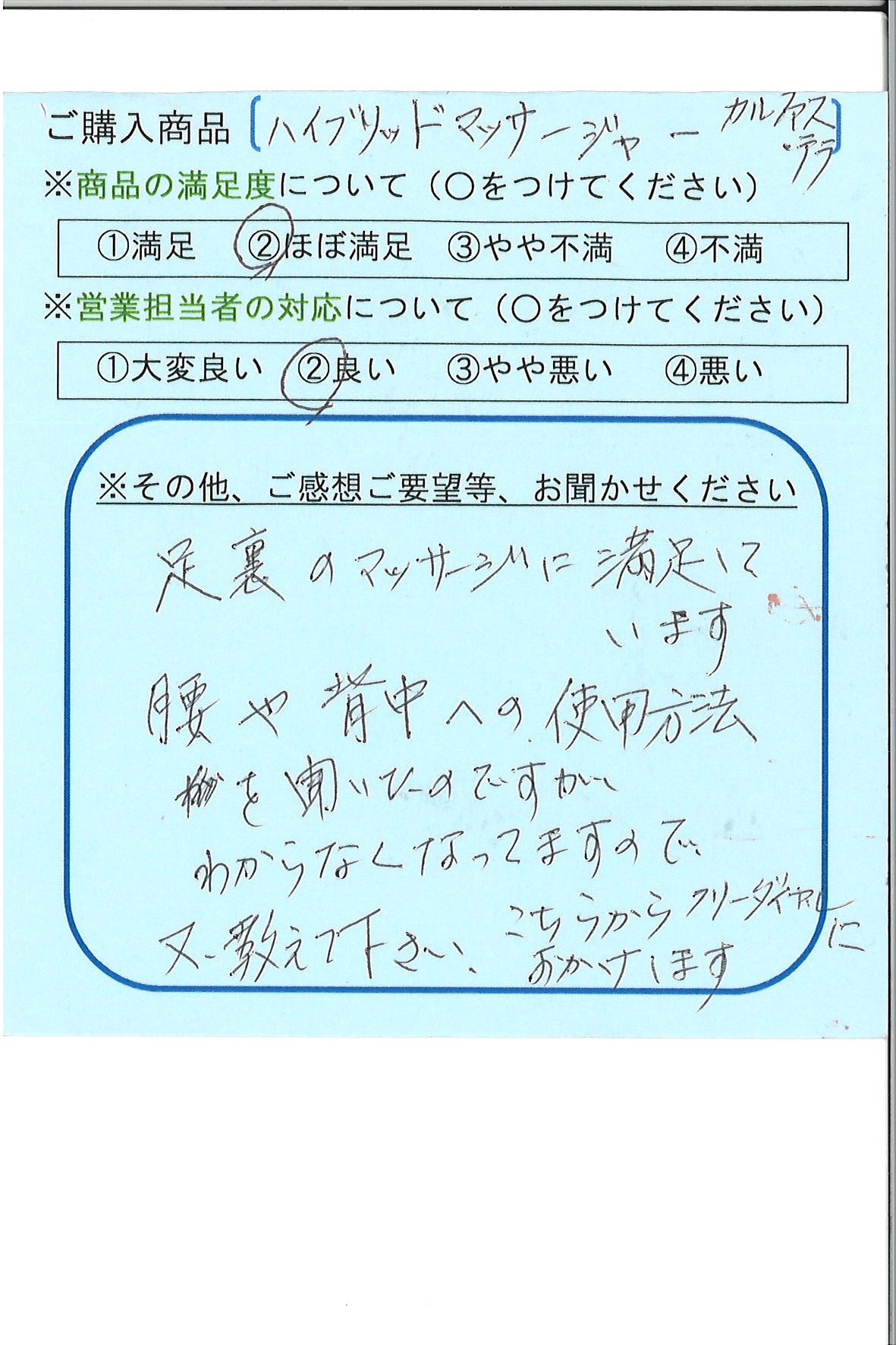 腰や背中への使用方法を聞いたのですが、分からなくなっていますので、又教えてください。
