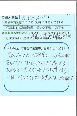 足のうらのみ15分ずつしているのですが、足がツラなくなったように思います。太ももが太くなったように思います。1日どれだけしても大丈夫なものですか?