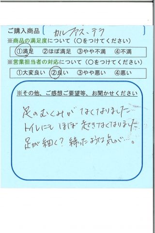 足のむくみがなくなりました。トイレにもほぼ起きなくなりました。足が細く?締まったような気が…
