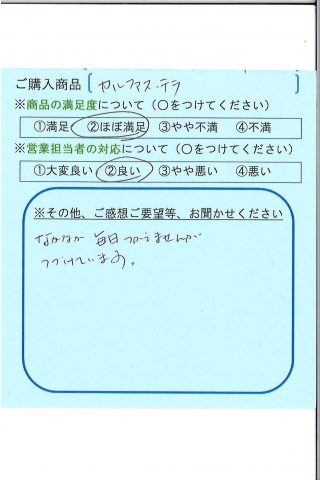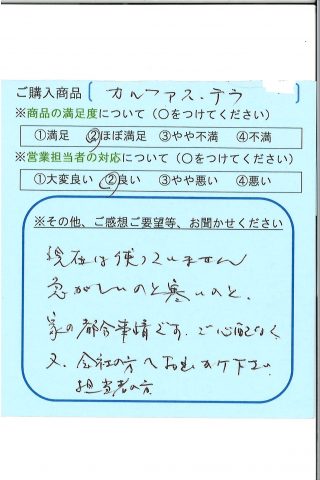 現在は使っていません。忙しいのと寒いのと、家の都合事情です。ご心配なく。また、会社の方へお出かけください。担当者の方。