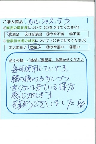 毎日使用しています。膝の痛みも少しづつ良くなって来ている様な感じがします。有難うございました!!