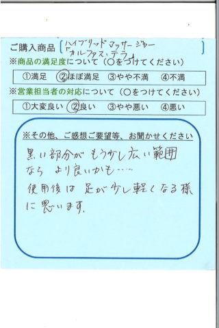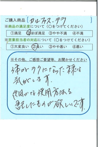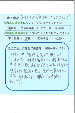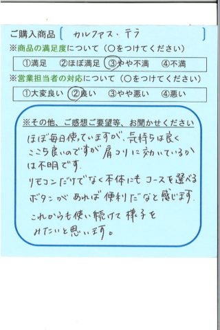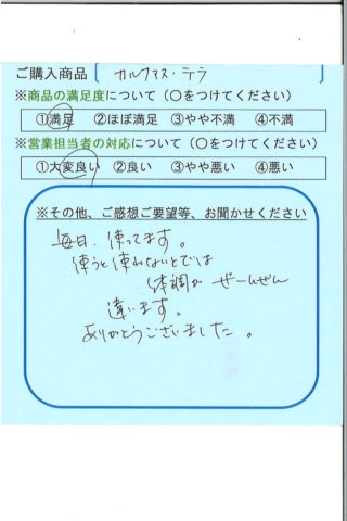 毎日使っています。使うと使わないとでは、体調がぜーんぜん違います。ありがとうございました。