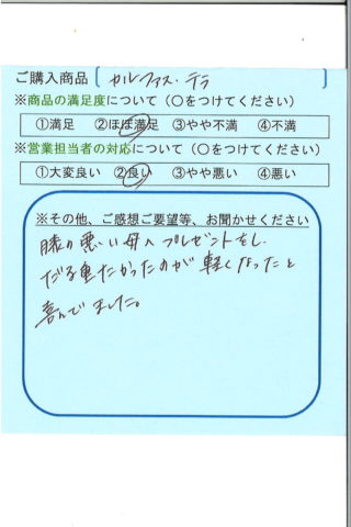 膝の悪い母へプレゼントをし、ダル重かったのが軽くなったと喜んでいました。