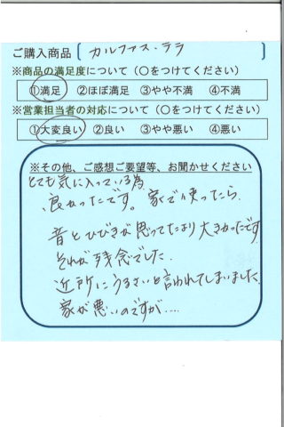 とても気に入っている為、良かったです。家で使ったら音とひびきが思っていたより大きかったです。それが残念でした。近所にうるさいと言われてしまいました。家が悪いのですが…