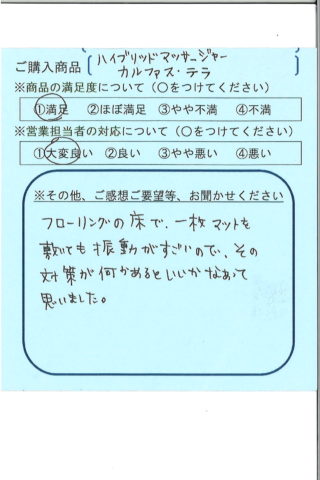 フローリングの床で、一枚マットを敷いても振動がすごいので、その対策が何かあるといいかなぁって思いました。