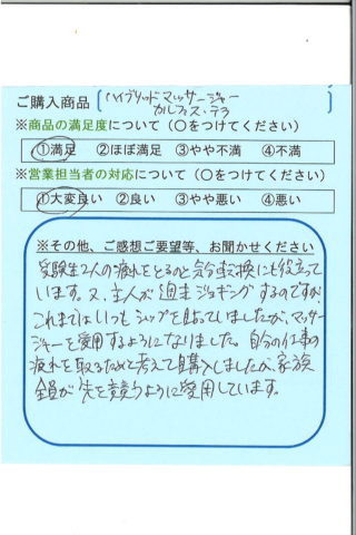 毎日使っています。使うと使わないとでは、体調がぜーんぜん違います。ありがとうございました。