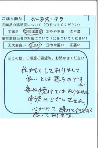 使用後、とても体調がいいです。ありがとうございました。